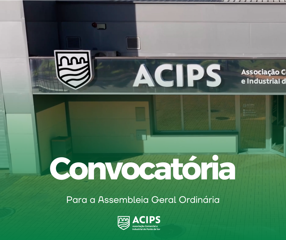 A ACIPS informa que irá realizar-se a 𝐀𝐬𝐬𝐞𝐦𝐛𝐥𝐞𝐢𝐚 𝐆𝐞𝐫𝐚𝐥 𝐎𝐫𝐝𝐢𝐧𝐚́𝐫𝐢𝐚 no próximo dia 𝟑𝟎 𝐝𝐞 𝐣𝐚𝐧𝐞𝐢𝐫𝐨 𝐝𝐞 𝟐𝟎𝟐𝟔 (𝐬𝐞𝐱𝐭𝐚-𝐟𝐞𝐢𝐫𝐚), 𝐩𝐞𝐥𝐚𝐬 𝟏𝟖𝐡𝟎𝟎, na sede da Associação, sita no 𝐍𝐢𝐧𝐡𝐨 𝐝𝐞 𝐄𝐦𝐩𝐫𝐞𝐬𝐚𝐬, 𝐑𝐮𝐚 𝐝𝐞 𝐓𝐢𝐦𝐨𝐫, 𝐋𝐨𝐭𝐞 𝟑𝟓, 𝐞𝐦 𝐏𝐨𝐧𝐭𝐞 𝐝𝐞 𝐒𝐨𝐫.
